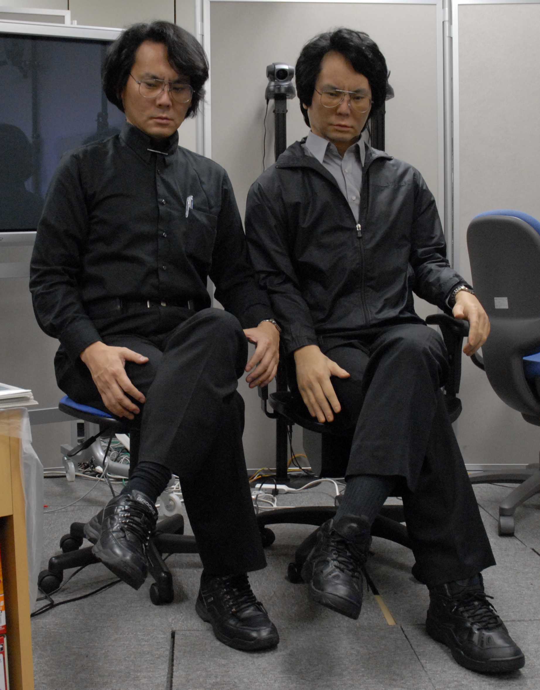 Hiroshi Ishiguro and his geminoid. Another imitation game.
